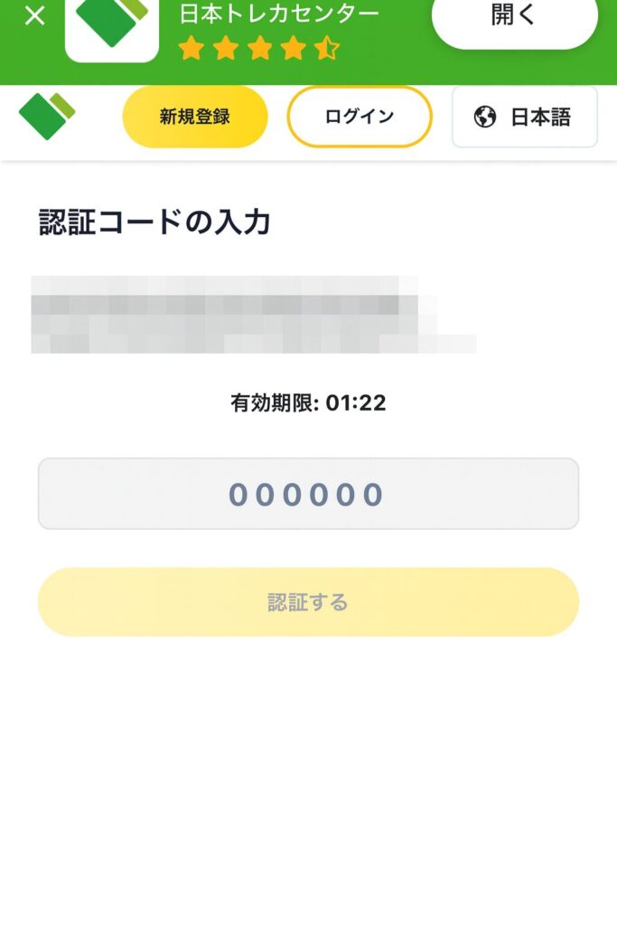 メールアドレスで登録を選択した場合、登録したメールアドレスあてに認証コードが送られてきます。